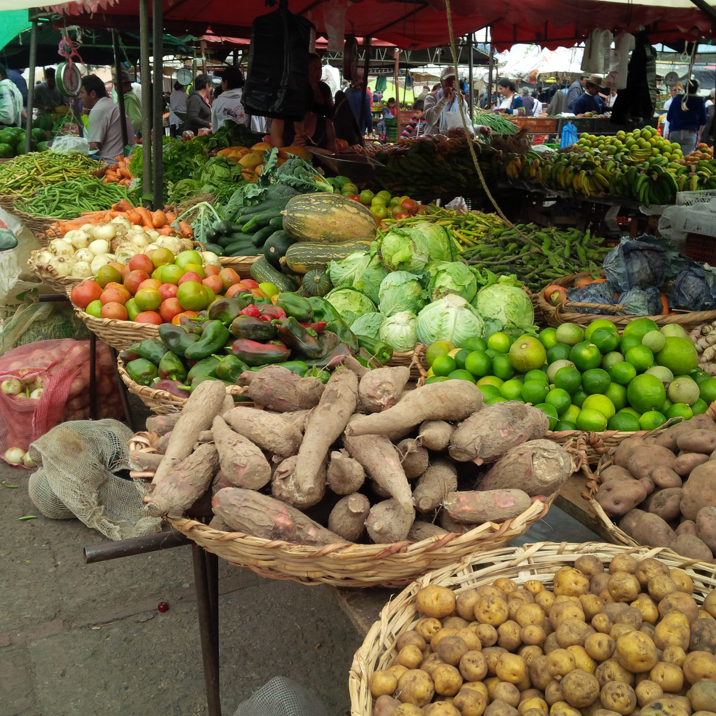 Jeden Samstag ist auf einem kleinen Platz Markt mit gaaaanz viel Gemüse, Obst, Gewürzen und vielen anderen Dingen.