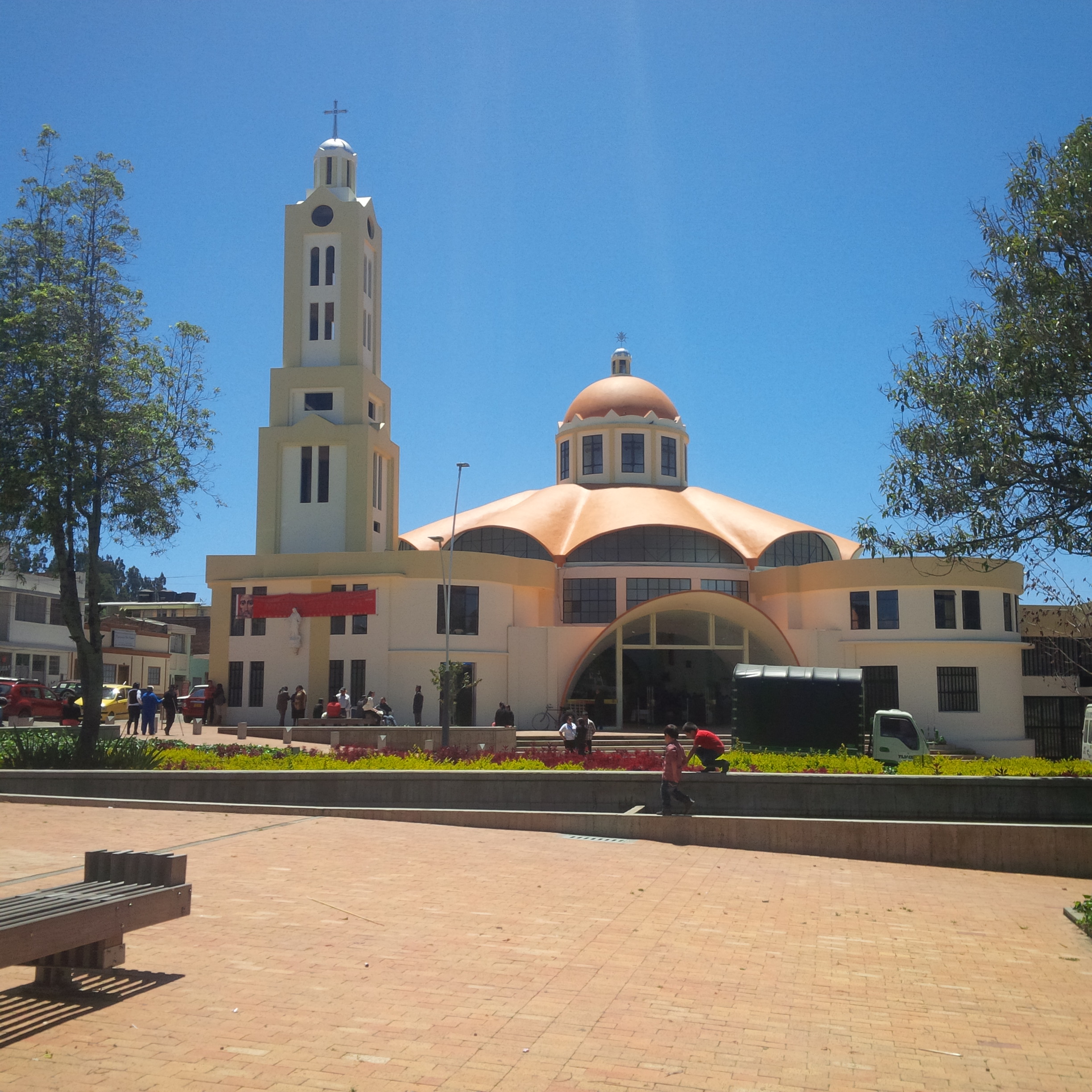 Ich schlug dann vor nach Chiquinquira zu fahren, eine kleinere Stadt ca 40 Minuten entfernt. Dort wollte ich bevor ich zurück nach Deutschland fliege unbedingt nochmal hin. Von meinem Besuch im November hatte ich in einem älteren Beitrag schon berichtet. Damals habe ich Nubia kennengelernt, eine prima (Cousine) von meinem Nachbarn. Ich habe oft an sie gedacht, weil sie sooo herzlich ist. Ich wurde freudig von ihr empfangen. Nach einem kleinen Frühstück sind wir in der Stadt rumgelaufen und ich habe mich viel mit ihr unterhalten.