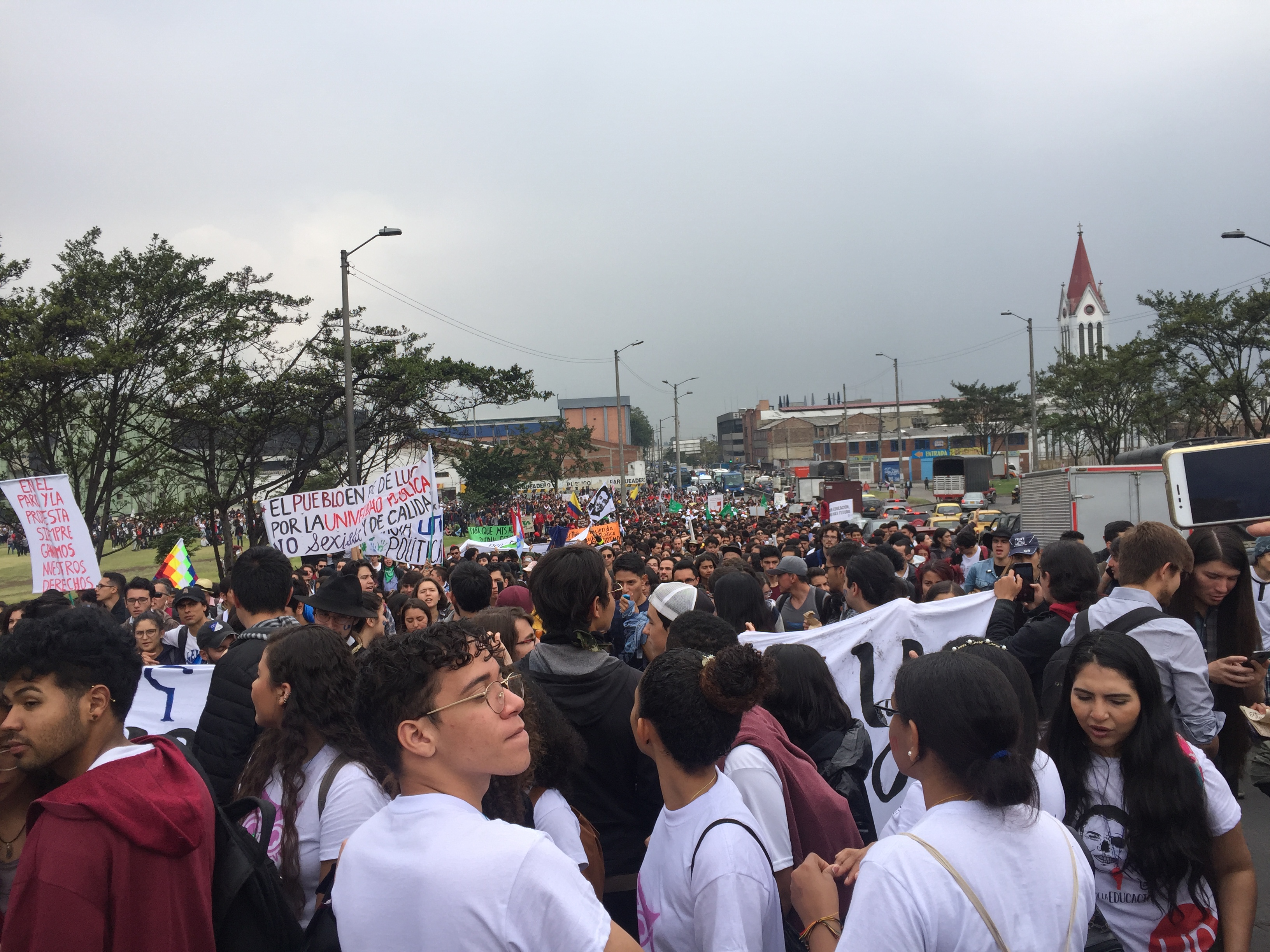 In Kolumbien ist gerade einiges los! Mit dem Präsidentschaftswechsel Anfang August habe ich das auch nicht anders erwartet. Kolumbiens Studierende versammelten sich am Mittwoch, den 10. Oktober auf den Straßen, um für ihr Recht auf Bildung zu kämpfen.