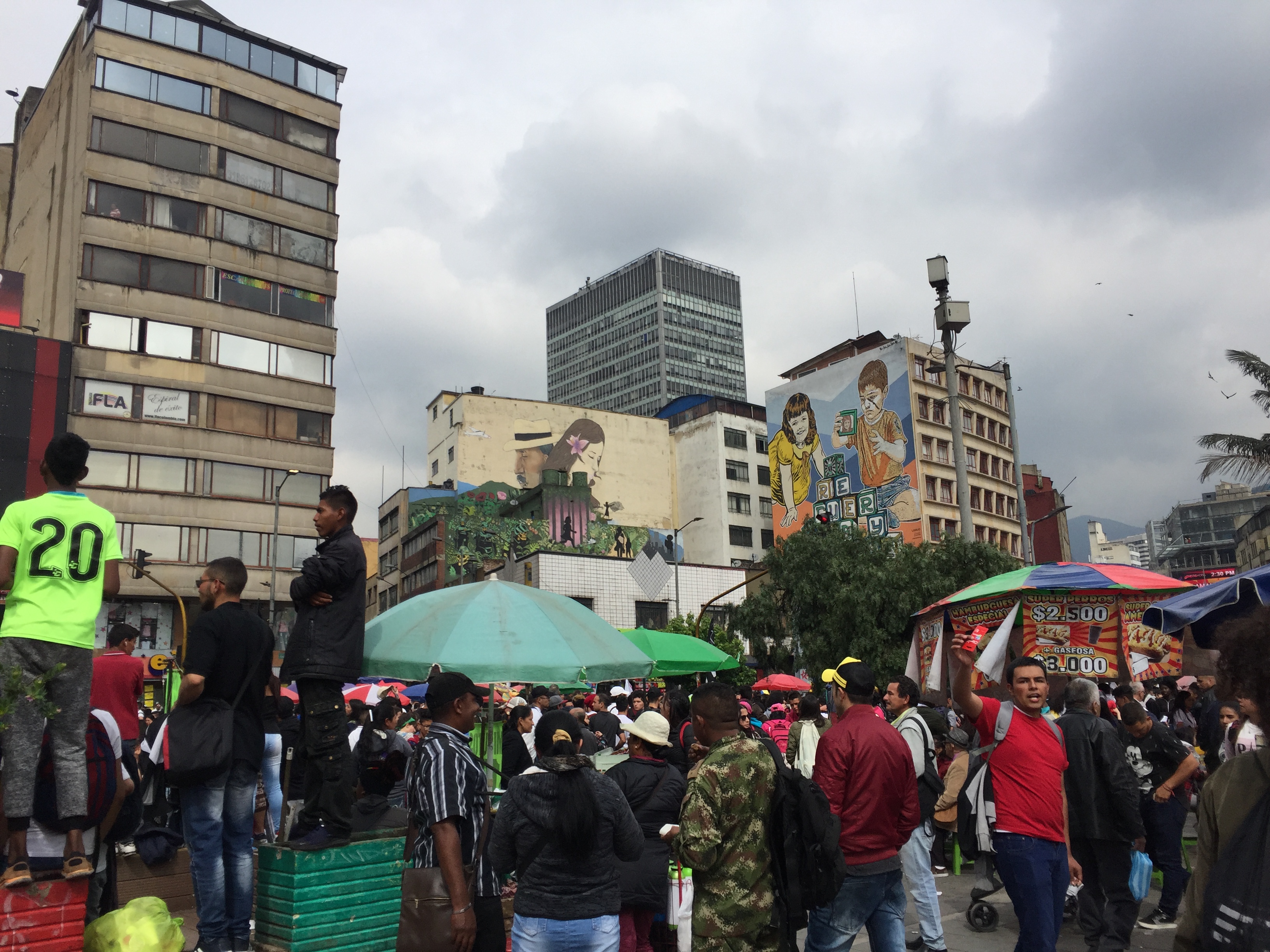 32 öffentliche und 28 private Universitäten nahmen teil an der marcha. Kolumbienweit gingen 450.000 Menschen auf die Straßen, um für ihr Recht auf Bildung zu kämpfen. In Cali, Medellín, sogar Tunja, Bogotá und vielen weiteren Metropolen versammelten sich Studierende, Dozierende und weitere Betroffene auf den Straßen. Um 11 Uhr versammelten sich die Studierenden der Nacional mit Schildern, Plakaten und Sprüchen auf dem Hauptplatz, der Plaza Che, um dann vier Stunden bis ins Centro auf die Plaza Bolívar zu marschieren. Straßen wurden gesperrt und keine transmilenio fuhr mehr in dem Zeitraum. Je näher wir dem Centro kamen, auf desto mehr Universitäten stießen wir, unter anderem auch die großen Privatunis der Stadt Los Andes und die Javeriana, die die öffentlichen Unis im Protest unterstützen. Über uns kreiste ein News-Hubschrauber, der die Dimensionen der Menschenmasse sichtbar machte.