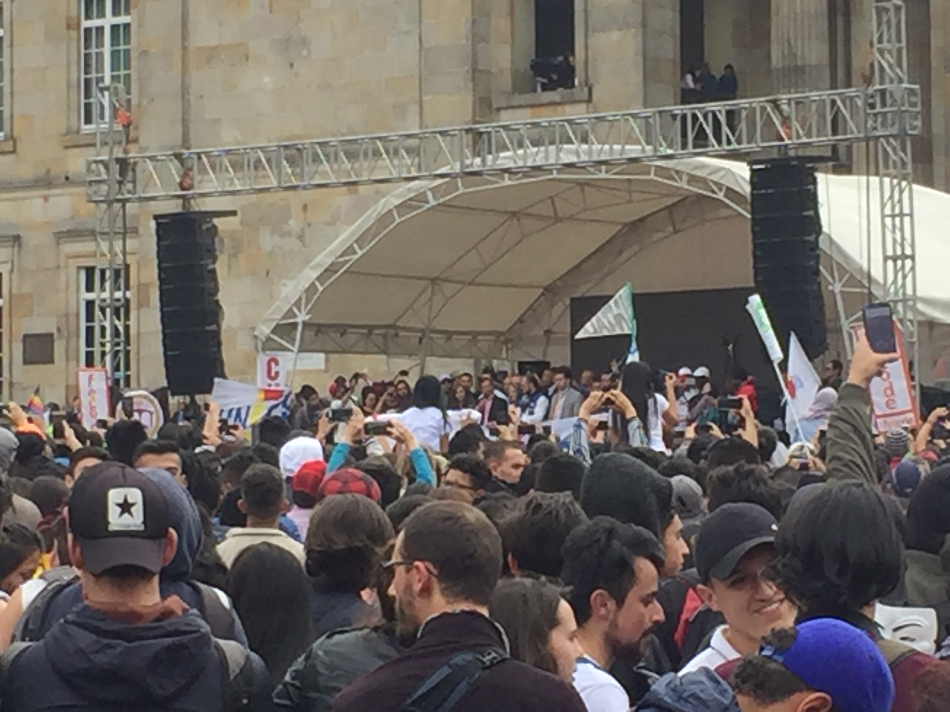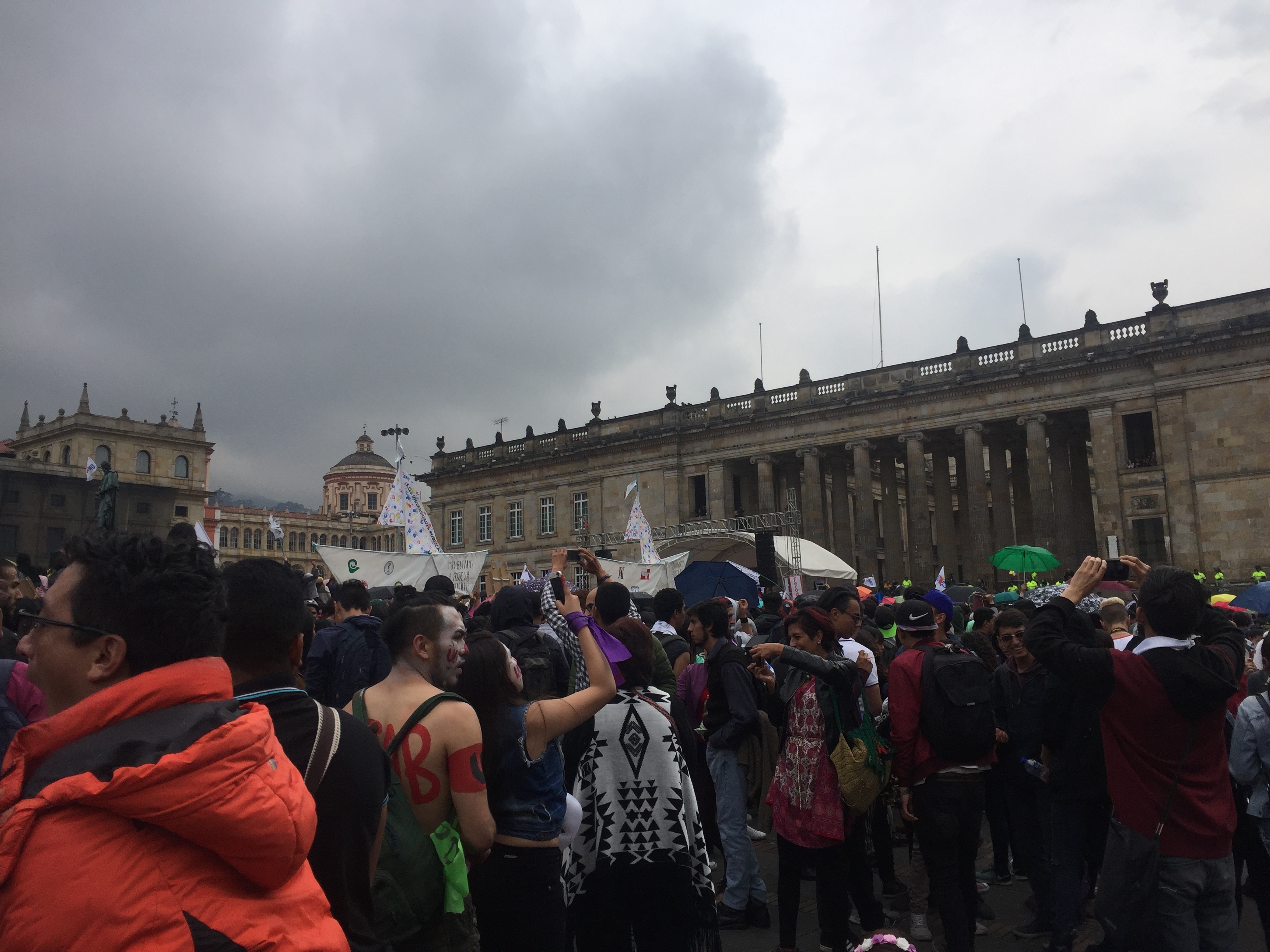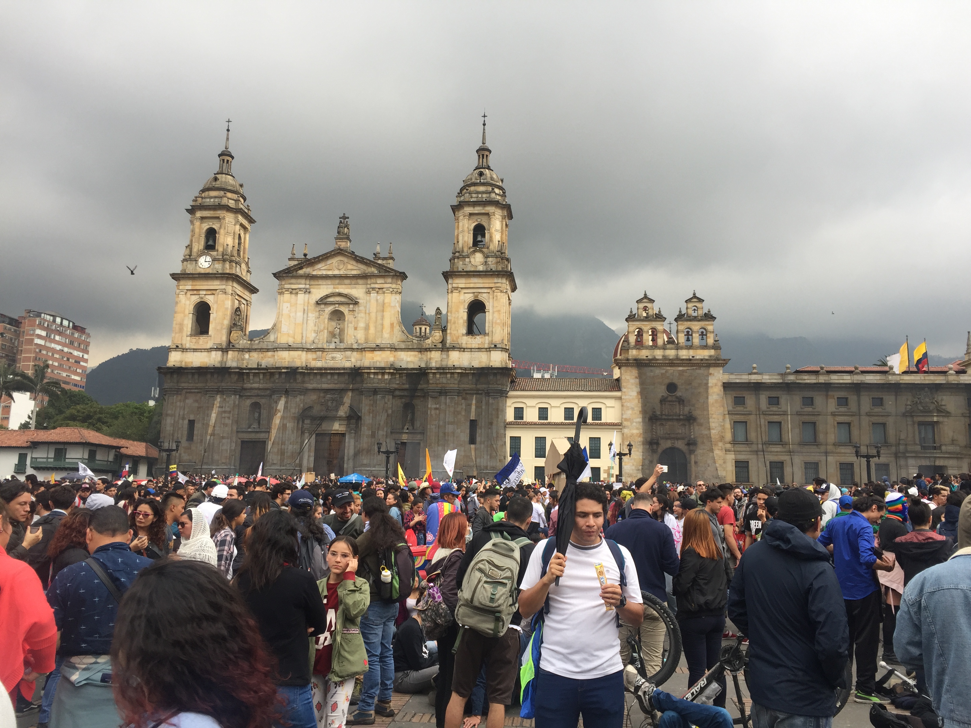 Auf der Plaza Bolívar angekommen, schon mit Halsschmerzen und steifen Beinen, hörten wir eine Rede des linksliberalen Präsidentschaftskandidaten und Zweitplatzierten Gustavo Petro. Ich habe mich sehr gefreut ihn en vivo (live) zu sehen und zu hören. Gleichzeitig macht es mich auch traurig, da ich mich frage, was gewesen wäre, wenn er die Präsidentschaftswahl gewonnen hätte.