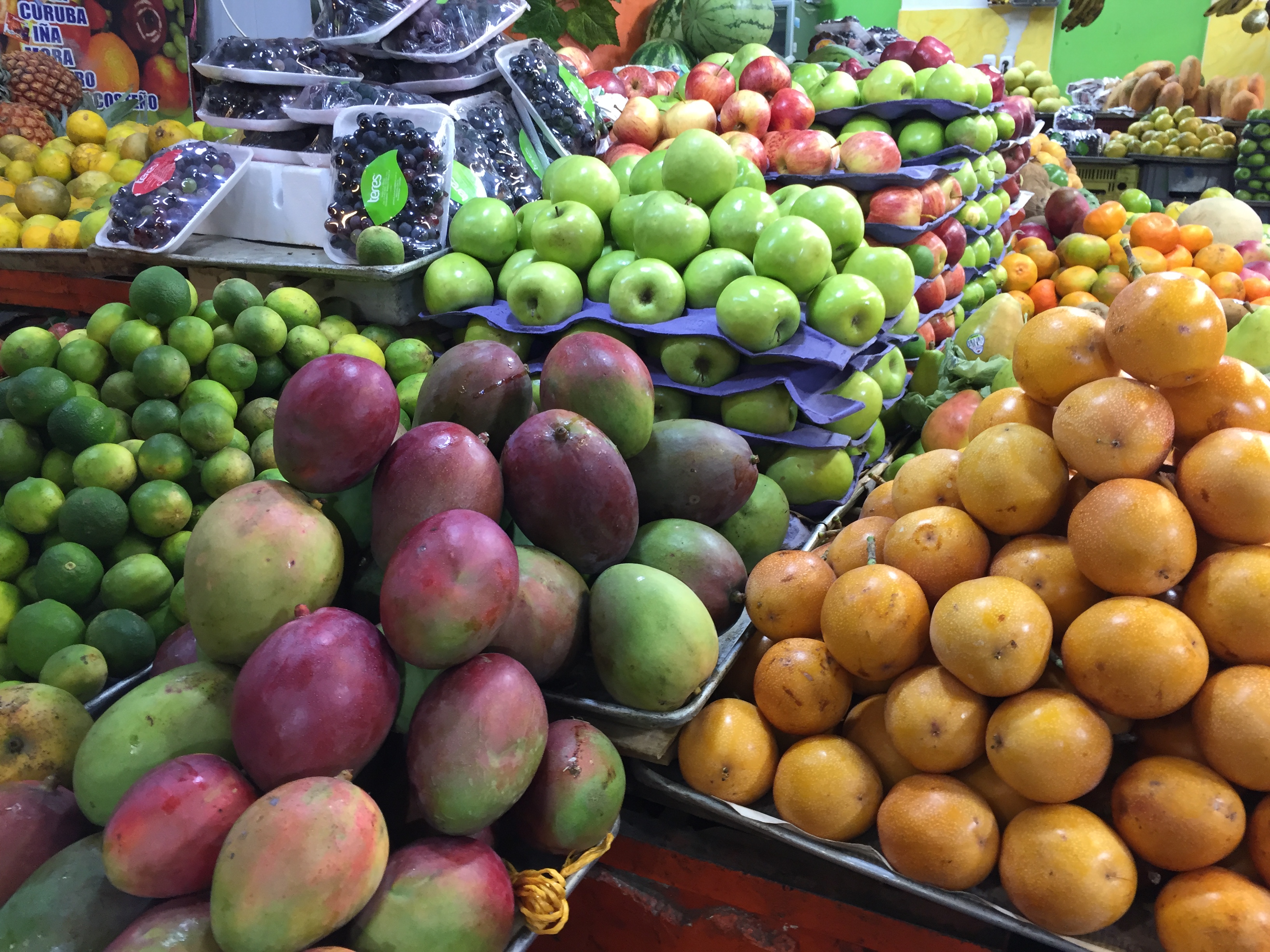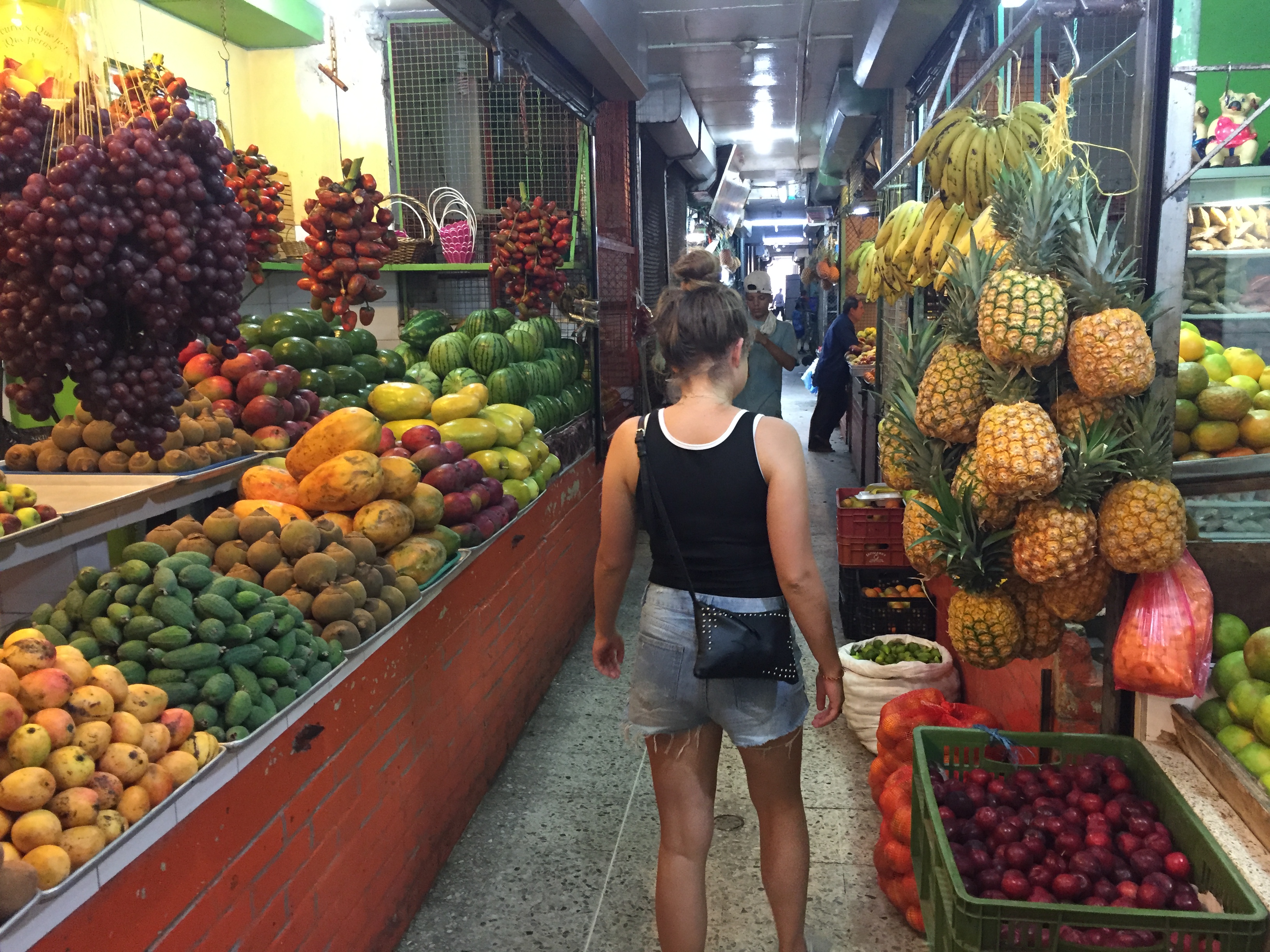 Uns wurde empfohlen den mercado kennenzulernen. Auf vier Etagen findet man alles, was man braucht in den alten Markthallen! Dort aßen wir für 7.000 (ca. 2€) Mittag und tranken frisch gepressten jugo (Saft) an einem Stand. Ich war ziemlich beeindruckt von dem Ort! In der 1. Etage gab es Gemüse, in der 2. Obst, in der 3. Fisch und Fleisch und in der 4. die Restaurants und alles, was thematisch nicht in die anderen Etagen passt (Kleidung, Küchenutensilien, Massageöl).