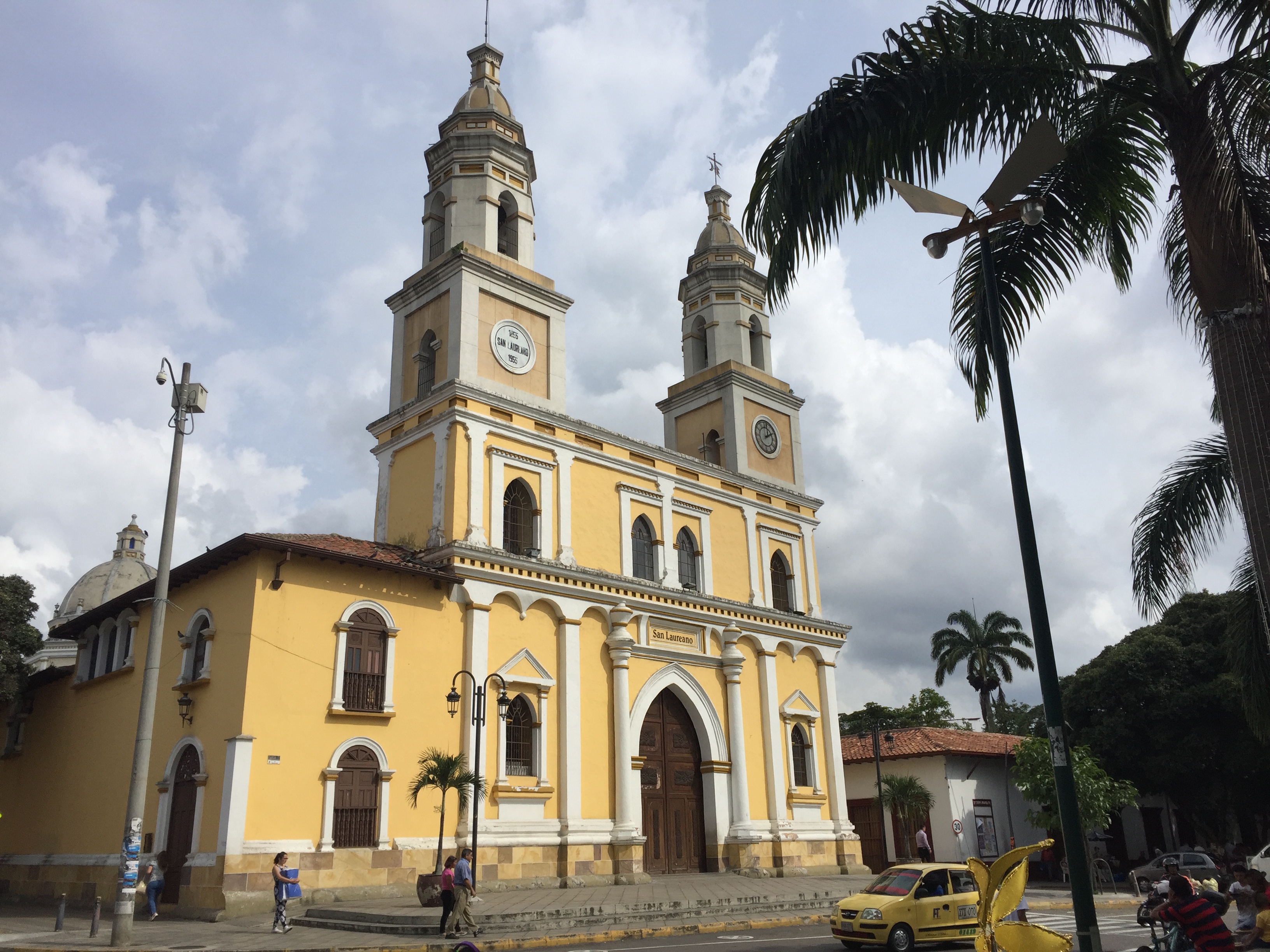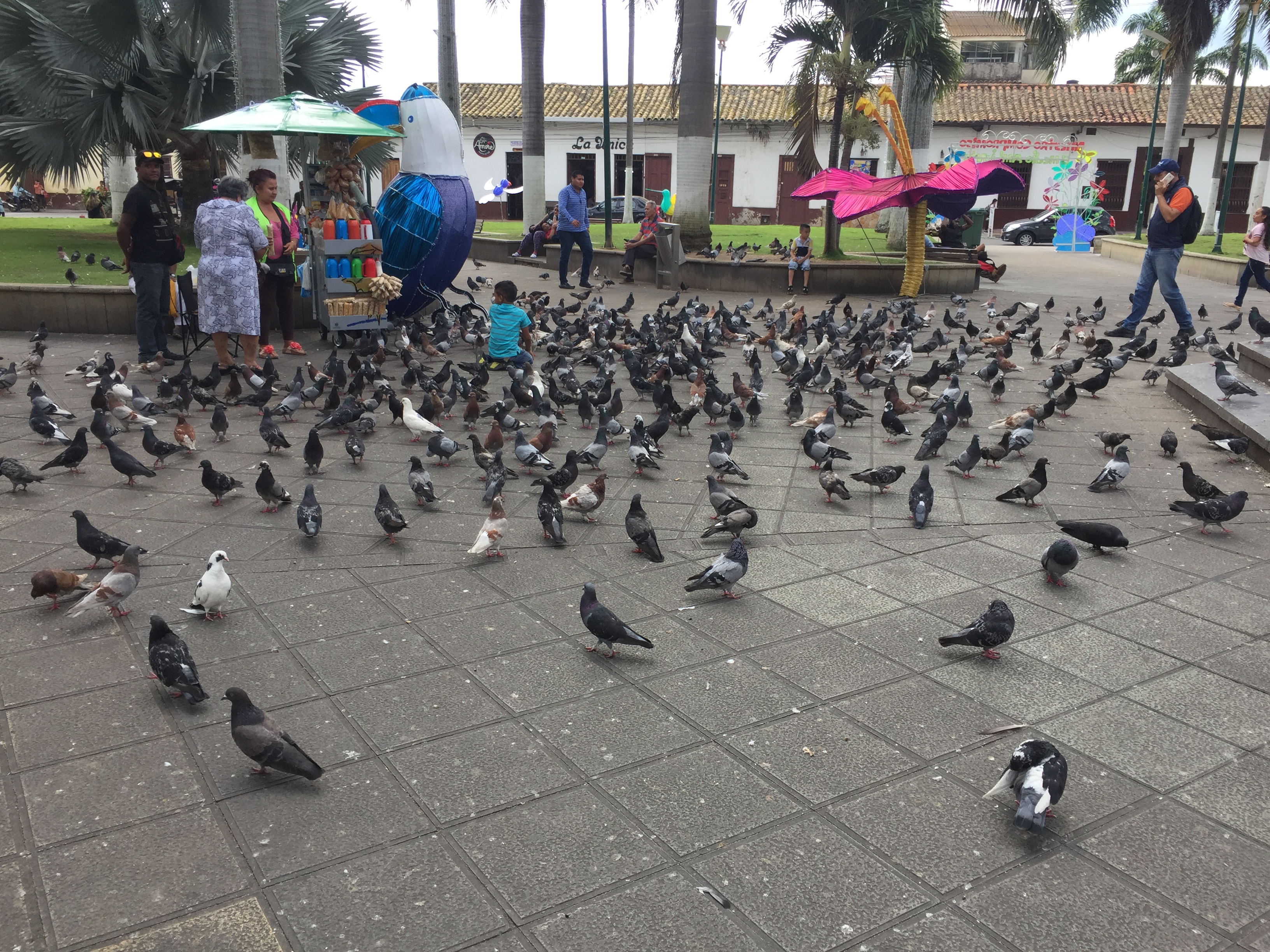 Bucaramanga ist die Hauptstadt des Departamentos Santander und mit 1,1 Millionen Einwohner*innen die fünftgrößte Metropole Kolumbiens (nach Bogotá, Cali, Medellín und Barranquilla). Dort mussten wir feststellen, dass es sinnvoll sein kann, sich vorzubereiten, wenn man die Stadt an nur einem Tag kennenlernen möchte. Nachdem wir im centro histórico angekommen sind, ließen wir uns ein bisschen durch die belebten Straßen treiben. An jeder Ecke wurde alles Mögliche verkauft, Fernbedienungen, Babyschuhe, Früchte und Spielzeug. Irgendwie sind wir dann im casa de las culturas gelandet, ein schönes Gebäude, in dem in verschiedenen Sälen Tanz- und Musikkurse angeboten werden, Ausstellungen zu sehen sind und eine Bibliothek. Irgendwie sind wir dort mit einem netten Organisator der Kulturprogramme ins Gespräch gekommen, der uns eine halbe Stunde etwas zur Geschichte Santanders erzählte. Seine Begeisterung dafür, dass wir deutsch sind, erklärte sich mit der Geschichte Santanders. In Santander gab es deutsche Migranten, die die Kultur mitbestimmten. Noch heute gibt es in Santander mehrere Menschen, die helle Haare, Haut und Augen haben und um die 20 deutschen Nachnamen, wie z.B. Schneider. Das erste Bier in Kolumbien, wurde in Santander in einer deutschen Brauerei gebraut. Die Braukultur wurde von Santander aus in die anderen Departamentos verbreitet. Heute kann man sich die Ruinen der ersten Brauerei Kolumbiens in Bucaramanga ansehen.