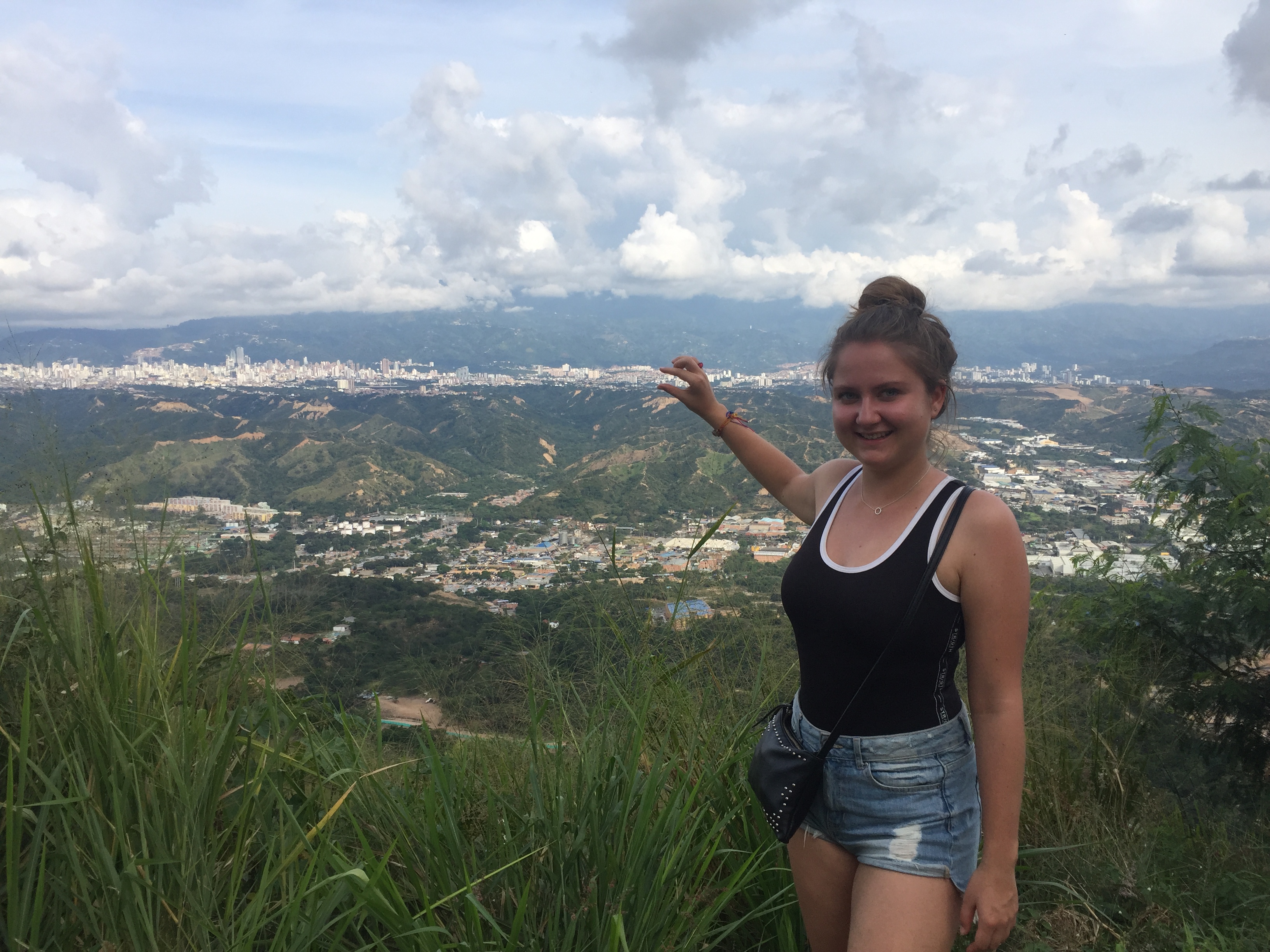 Danach wollten wir die Stadt noch von oben sehen, da Bucaramanga sehr viele Hochhäuser hat! Unser Ziel war el cerro el santísimo, ein Aussichtspunkt mit einer Heiligenfigur. Da wir 8 Kilometer entfernt waren, entschieden wir uns ein Taxi dorthin zu nehmen, unser Taxifahrer meinte jedoch, es würde sich nicht lohnen dort hinzufahren, da wir 20.000 pro Person zahlen müssten, um auf den Aussichtspunkt zu kommen. Er, als Einheimischer, hatte einen viel besseren Plan für uns. Für 30.000 Pesos wollte er uns zu einem Aussichtspunkt in der Nähe des Flughafens bringen. Ich hatte schon von Anfang an kein gutes Gefühl dabei und der Taxifahrer erschien mir nicht besonders vertrauenswürdig. Trotzdem ließen wir uns zu seinem Geheimtipp fahren. Wir fuhren und fuhren und fuhren, bis wir komplett aus der Stadt raus waren und das nächste Dorf an uns vorbeizog. An seinem Punkt angekommen, konnte man Bucaramanga in 6 Kilometer Luftlinie erahnen. Wow! Was für ein toller Geheimtipp 😀 Bucaramanga von oben und ganz weit weg. Wir nahmen die Sache mit Humor und notierten uns für die nächste Reise uns vorher mehr zu informieren und keinen Taxifahrern zu trauen.