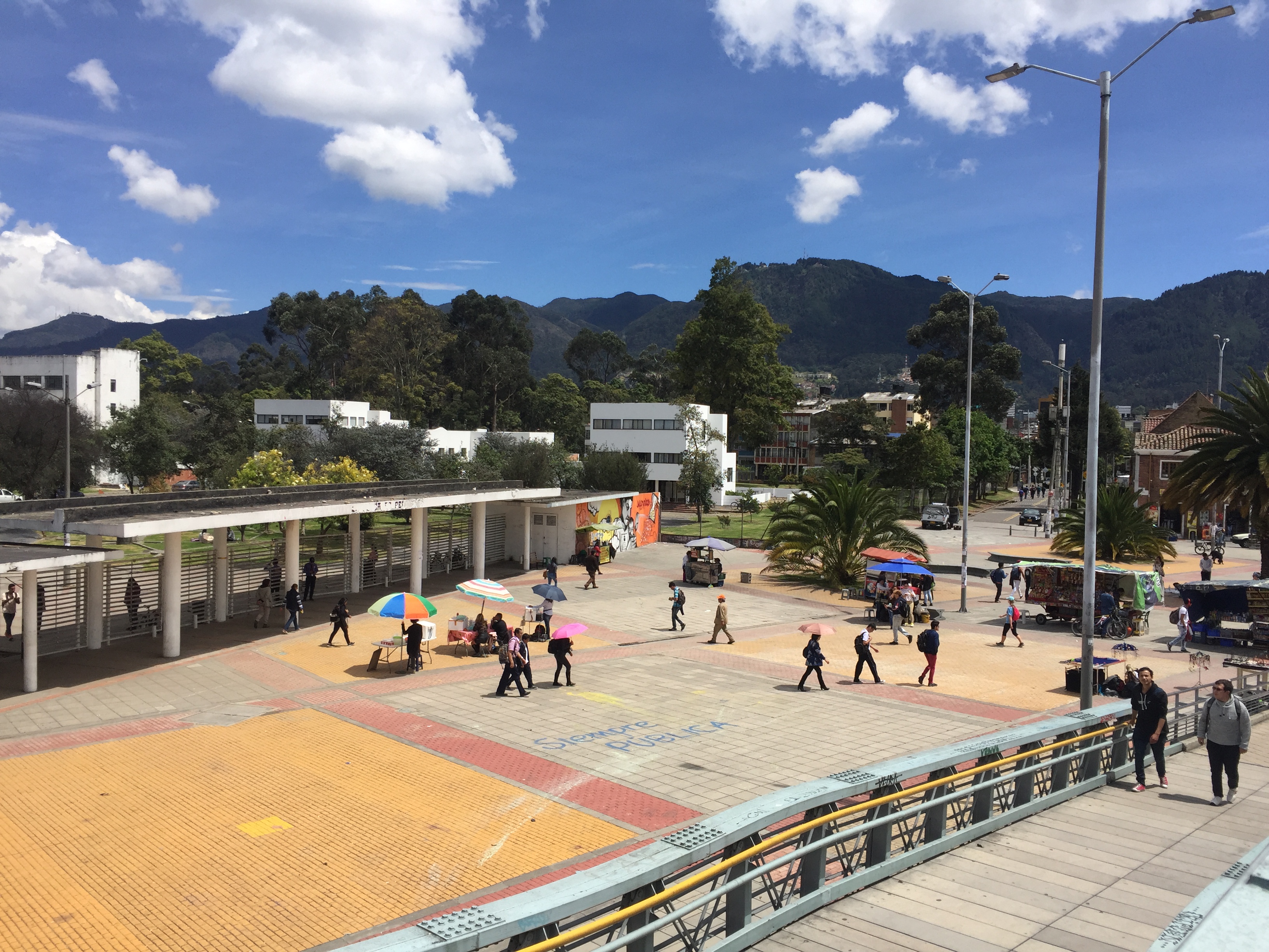 Die UNAL ist für mich ein besonderer Ort! Auf dem Weg zum Flughafen war es der erste Ort, an dem ich anfing zu weinen. Jeden Tag, den ich zur Uni ging, lief ich über die große Brücke der 26ten und genoß den schönen Anblick Bogotás. Das war immer der Moment, als ich dachte: ja, hier bin ich glücklich! Eine bunte, chaotische Großstadt, die im Hintergrund von hohen Bergen umsäumt wird. Ganz oben an der Spitze der Berge sieht man el monserrate.